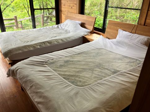 難儀な道を乗り越えてやっと着いた宿「 おがわ作小屋村 」10年以上前にTVで見て ずっと「 行ってみたいな 」と思っていた。宮崎県の山の奥の奥の桃源郷チェックインしたら山の上の家に車で行く。12棟あるみたい。我等はA棟 宿泊は、私達だけみたい。花が咲く季節には混むみたいだけど桜も終わってしまったのでオフシーズン。正面に見えるのは「小川城址公園」左の坂を登ってこれがA棟階段を昇ると玄関庭から見た景色。桜や桃の咲く季節はまさに桃源郷だね。小川城址公園も見える。中もきれい。建物もなく覗く人も通らないのでこのままでも問題ないがカーテンの代わりにブラインドが付けられている。表に出たら木のベンチが有るスペース