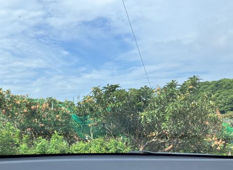 南知多のびわ狩りに行ったよ。一年に一時期だけのイベント。我が家は初体験。早めに行ったけど、次々車が来た。受付けで申し込む。ひとり1000円。時間は制限なしで食べてよし。お土産付き。虫よけスプレーはしたけど、蛇は想像してなかった。カゴとハサミを渡されて「カゴにこれくらい持って帰れます。それ以外は食べてください。」カゴに八分目くらいに見えた。このくらいの量かな?旦那は、意気込んでいたくせに5個食べ私は、14個食べたよ。このくらいカゴに詰めてオバチャンたちの所に持って行ったら秤で量られて1個だけはじかれカゴの重さを除いて2キロ超お土産にくれた。品種は「 茂木びわ 」だって。2人で4㎏いくらびわ好きでも大量一部 ラカントとラム酒で甘く煮た。美味しく煮えたけど 指先や爪がびわのアクで真っ黒になってなかなか元戻らない。