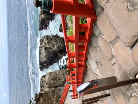 道の駅フェニックスを後にしてさらに30分近く日南海岸を南下すると「 鵜戸(うど)神宮 」外人も多い。よくこんなところにまで来るね。下の方に本殿が有る。登って行って本殿が有るのは普通だけどここは下って行って本殿がある。珍しいよね。海に浸食された岩窟の中に建っている。本殿建立の年代不詳。幾度も改修・修理がなされて今日に至る。珍しい神社に参拝できた。