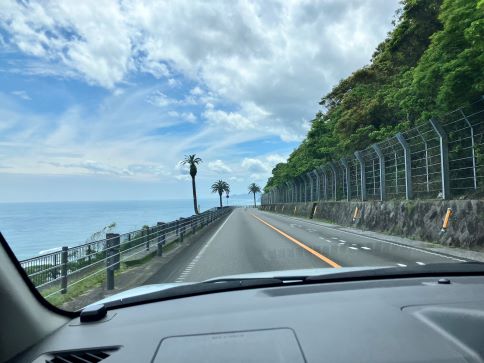 山奥から海側に出て南下する。青島を通過して「ひむか神話街道」を走る。鬼の洗濯板がずーーっと続いている。フェニックスの木が 宮崎の風景。寿命が長いことからフェニックス(不死鳥)という名前になったらしい。「道の駅フェニックス」に到着。長生きした風格を感じるフェニックス。力強いねー。生命力~。この先もずっと続いている「鬼の洗濯板」全国何処でも売っている。 SABARA-購入。好きなので。道の駅フェニックスのお姉さんに聞いたらハウスの日向夏は、種が無いのだそう。露地物は種有り。両方売っていたのでハウス栽培の方を購入したらなんと、同じくらいの量の露地物をオマケでくれた。優しいなー。両方ともすごく美味しくてすっかり日向夏に魅せられてしまいふるさと納税やお取り寄せしちゃってる。皮は自分でピールにしている。これがまた美味しい。「道の駅フェニックス」イイ店だなー。景色も最高だし。