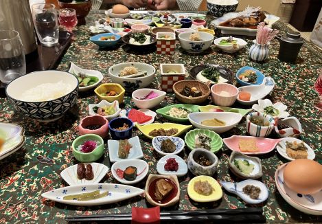 (HPよりお借りした)「西米良温泉カリコボーズの湯ゆたーと」大きな温泉施設でここの周りにはいくつか宿あり。(HPよりお借りした)ここの売店で「 なんでしょ 」という名の西米良産乾燥ゆず皮フレーク を購入。自分でブレンドする七味唐辛子に入れたらとても香りがいい。冷凍庫で保存してるよ。宿に帰ったら夕食が運ばれていた。説明書付き「4月のメニュー」位置が逆だけど 写真と説明とまったく同じ。ひとつひとつ丁寧に作られている感じ。しみじみ美味しい。レストランでは、ランチで提供されていて人気らしいよ。来るときにスーパーで買ったマグロもおつまみにして お酒も飲んだ。夜は宿の皆さんは、家に帰ってしまうらしい。山の奥の奥で私達2人だけ。なんの音もしない静寂。こわーい。朝~~車でレストランに行く朝食めっちゃ美味しい。部屋に帰ってデザートに高千穂牧場の飲むヨーグルト。うましっ。