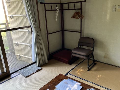 上山のファーマーズマーケットトマトに寄ってみる。りんごと白桃のジュース飲んだ。再び福島県に入るよ。福島県飯坂町飯坂温泉街3日目の宿は福島県飯坂温泉 旅館青葉二間になっていて、奥にはもう布団が敷かれてた。街中の温泉街なので窓の外は坪庭。