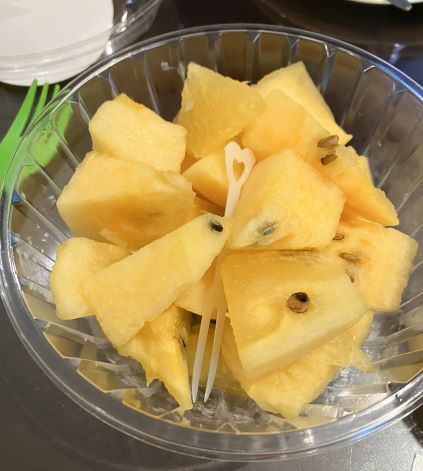 食品売り場で、スイカ・お寿司・牛乳など購入。