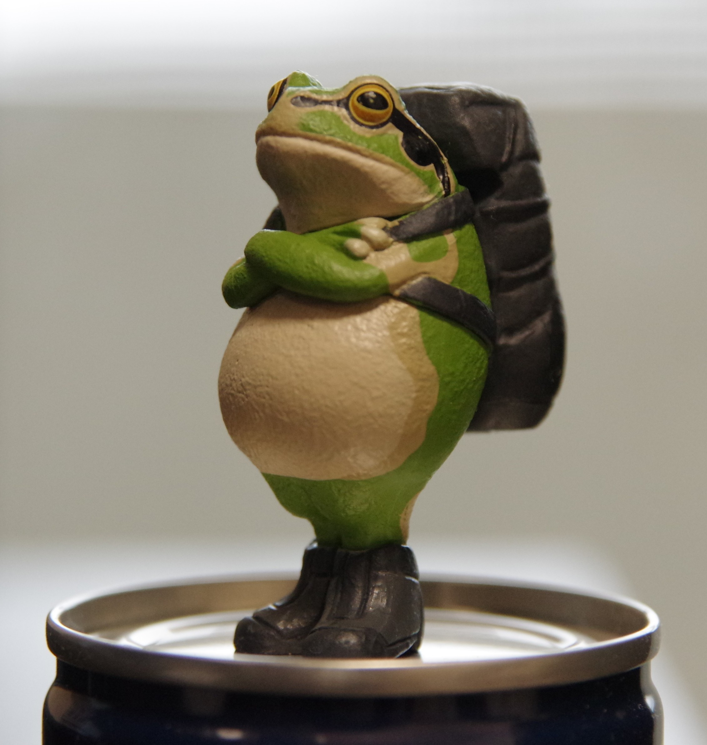 娘から面白いストラップをもらいました。娘曰く、「そっくりだから買ってきた」と。大きなザックを背負って腕組みをするニホンアマガエル。”カエルの森工房”の手による”無事カエル”ストラップというもの。かつて、ラインホルト・メスナー氏がヒマラヤの無酸素登頂の記録を更新し続けていた頃、毎日高校の石垣を攀じ登って高峰の頂を夢見る旅蛙がいたのです。ただひとつ写真とは大きく違っていたのは、体脂肪率数パーセントの引き締まった身体の旅蛙であったことでした。