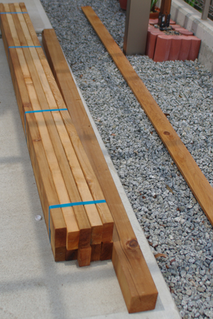 以前プログに書いた「 手作りガーデン★製作中★フェンス&ゲート」毎日暑くて中々作業が進みません。。。フェンスは大体めどがたってきたので、今度はゲート作り。まだ未使用の2×4レッドシダーが結構あるのですが、木工ランドに追加発注しました。1×4のレッドシダー、9mm角のウリン材を購入。ウリンは門扉の柱にします。覚悟はしていたけど、本当にウリンって堅くて重たい!手ノコで切ったり、ジグソーで切ったりしましたが、これを機に念願の丸ノコを楽天で購入♪マキタ電子造作用精密マルノコ165mm(チップソー付) 5617CBAといっても、私は怖くてつかえないので、旦那様にお願いします。
