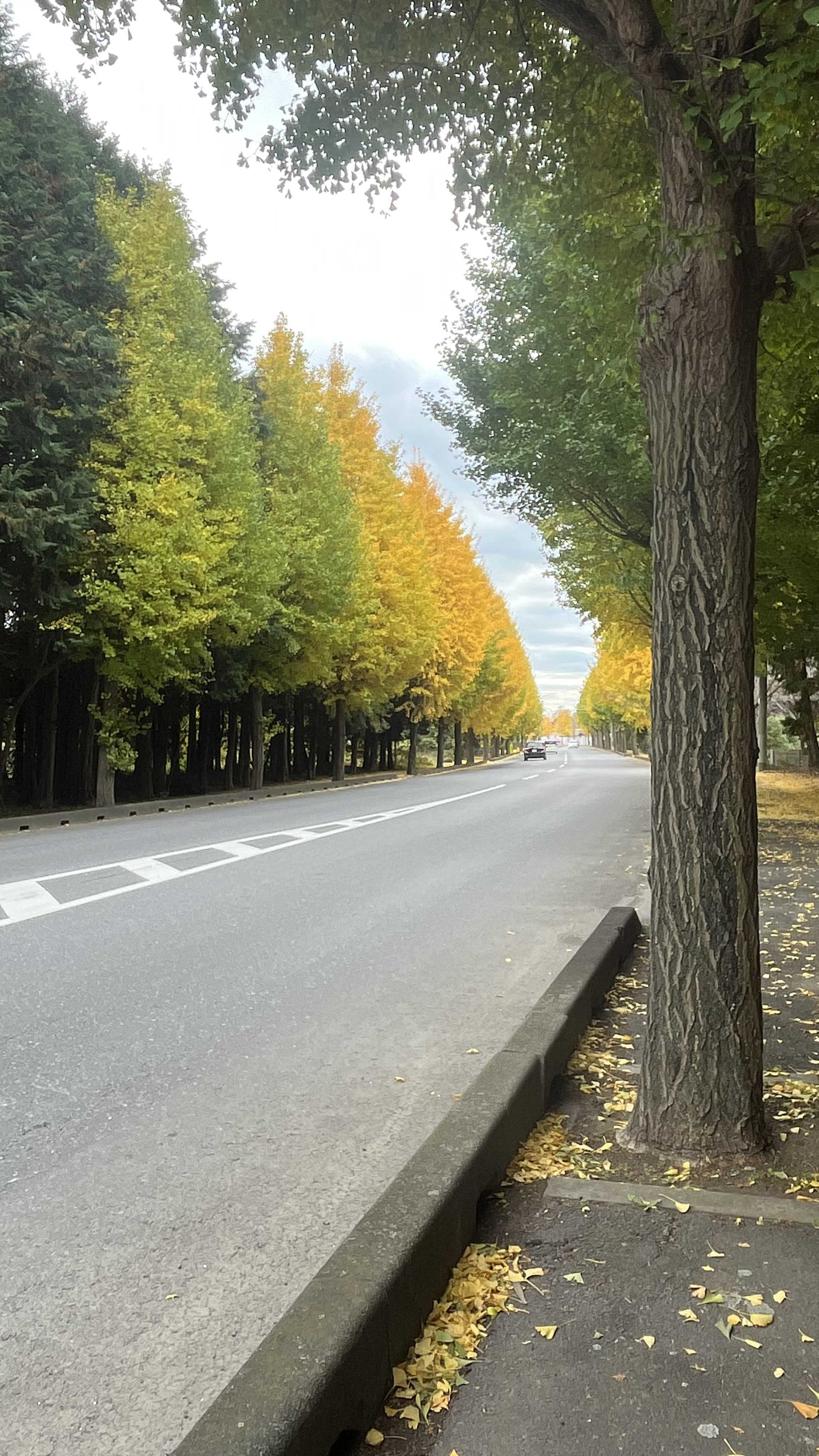 真っ黄色の通りも赤みの多い木の通りも