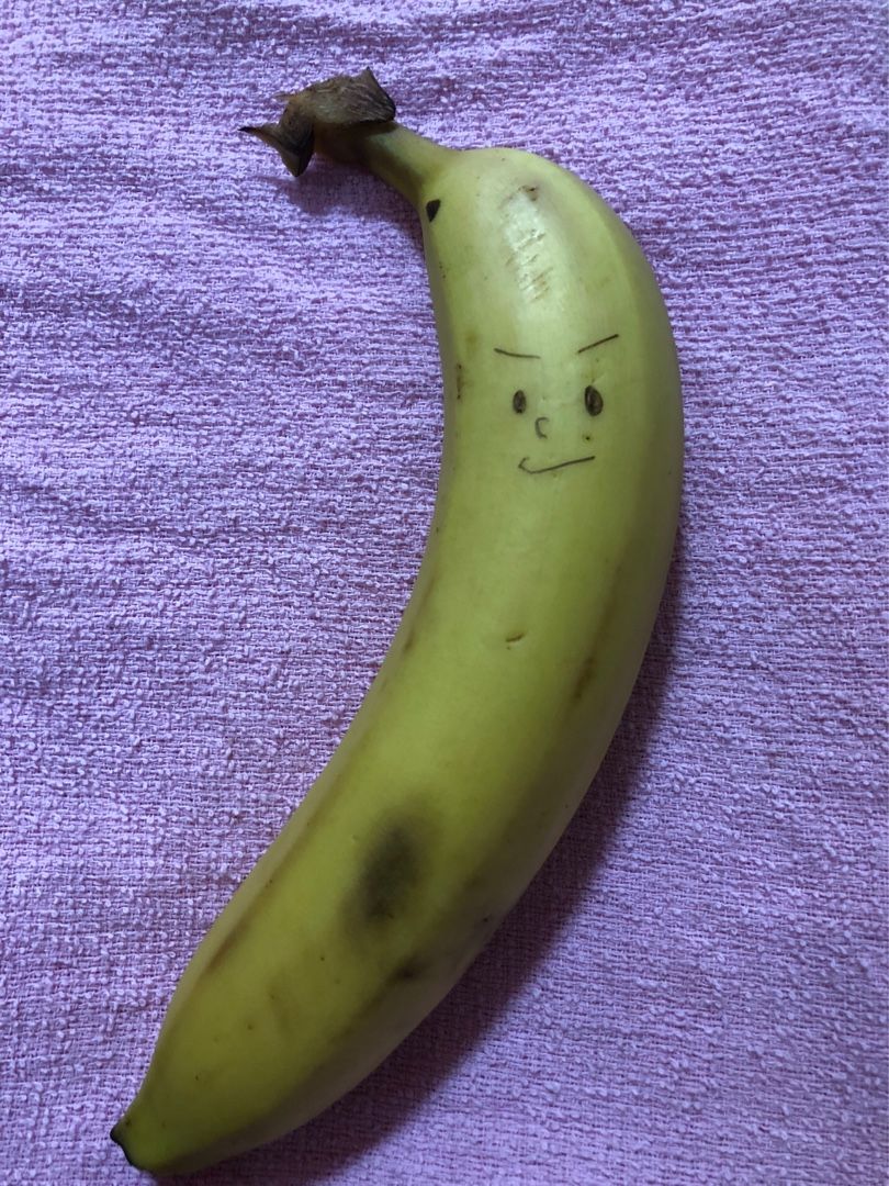 育児本に、「感情的になったら、別室に行くなど、とにかく距離を置くこと」 とあったので、トイレに逃げ込んでみたら、 ドアをガチャガチャされ、静かになった とおもったら 扉の下の隙間から手がにゅーっと 出てくるという、ちょっとした ホラー体験をした、むくみつです。 イヤイヤ期の子どもと1日いっしょに いると、どうしてもキーッとなってしまう ことありますよね。 なんとか叱らない方法はないか、 試行錯誤の連続です。 朝ゴハン食べなーい!と ぐすったときに成功したのは カオ描いちゃう作戦です。 こつやって、バナナにカオをかいて、 「おはよー!早くボクを食べてよー」 とバナナになりすましたところ、 作戦成功しました! ただし、毎朝 カオを描くように せがまれる可能性があるので ご注意を!