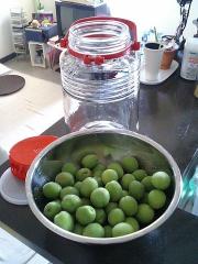 今回は、本命中の本命、梅酒造りです!青梅の発売を待ち、地元の八百屋さんで売り始めるのを心待ちにしていました!西友とかでもいいんですが、倍くらい値段するので、ちょっと我慢してみました♪#せこいですかなwまずは材料をば!・青梅1kg・焼酎35度1.8リットル・氷砂糖500g基本は↑みたいですが、ここは一つアレンジを!☆1 焼酎1.8リットル→1.1リットル+ブランデー700ml☆2 氷砂糖500g→300g+ハチミツ200cc#ブランデーはあるだけ入れただけなので、#比率はてきとうっすwでは、造りますよー!#前半戦、写真を撮るの忘れてました…(>_