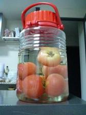 あれから一週間、焼酎たちは立派に成長しましたー!まずはお試しコーヒー焼酎!こちらはもうすぐにでも飲めそうな勢い!けど、3週間、みっちり熟成させますよー!(^ー^)そして、本命トマト焼酎!確認された変化は以下の通り!1) トマトに亀裂発生2) 焼酎がうすーく黄色っぽく変色あんまりわからないと思いますが、↓な感じですwこちらは飲み頃まで3ヶ月とかなり時間がかかるためか、劇的な変化はないですねぇ。#あー、早く飲みたい!内心、トマトが3ヵ月後にどのような姿になっているか、ドキドキしてますw美味しくなってねー!(^ー^)つづく#この日記、焼酎の記録ページになってしまうかもですなぁ…w