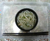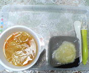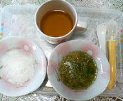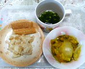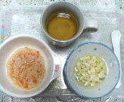 (午前)・キャベツ、大根の味噌汁(約50g)・トマトソース粥(約10g)・・変わりバーグ トマトソース和え(約15g)☆変わりバーグ:鶏ひき肉&豆腐食べ始め好調!味噌汁の具、汁をパクパク、ゴクゴク♪続いてお粥、バーグもパクッ!うーん!今日も朝から食欲旺盛だ☆・・・と思いきや、後半は かなり眠たくなってきたらしく、目こすりしながら寝焦がり(眠たくてぐぜる)が始まり、食欲がストップ。それでも味噌汁は具は全部食べて汁を半分くらい残し、お粥、バーグは半分食べていた。まぁ朝だから、こんなものだろう。(午後15時半~)今日は昼からシニア体操の仕事が入っていたので妹に るーたんのお守りに来てもらった。仕事に出かけるギリギリの13時前に授乳をしたが、私のお出かけを察知してか?あまり飲んでくれなかった(+-+)妹に「14時半~15時半頃にるーたんが お腹空いてくるはずだから、味噌汁あげてね!」とお願いして出勤。ってな訳で、画像取ってません(^-^;でも、朝の味噌汁の残りです(笑)・キャベツ、大根の味噌汁(約150cc!)帰宅後、妹に『るーたん 味噌汁食べた?』と尋ねたら『うん!全部食べたよー!ビックリした』(妹)と言うから、私もワァオー(^0^)♪とビックリ!だって、小鉢の8割くらい満杯に注いで冷蔵庫に入れていたのだ。おそらくお昼にオッパイを飲まなかったので喉が乾いて、お腹も空腹だったんだろう(^-^)+++++++++++++++++++++++++++++ママの仕事中も一人遊びに没頭してお利口にしていたそうだ。ほっとした。(午後18時25分~)さて、帰宅後バタバタと家事を片付け始めた。そして晩御飯&離乳食作りスタート!るーたんが空腹コールが早すぎたので、簡単取り分け離乳食メニューにした(^-^;そして、うどんの中に、穀類(うどん)・たんぱく質源(鶏ひき肉)・野菜類(白菜)の栄養3群を盛り込んだ簡単メニューの出来上がり~!・白菜、鶏ひき肉の味噌うどん(約100g)昼にたくさん味噌汁食べていたのに夕食もパクパク、だし汁もゴックンゴックン!音を立てながら飲んでいく(^0^)最終的に、うどん1本分、鶏肉5g、スープ5ccくらい残しただけだった☆よく食べたねー(^-^)ウレシー♪****************************今日はシニア体操講座で定員30名募集だったのに対し51名参加募集があったので、張り切って仕事をした。中高年の方々の自分の健康維持の為のやる気のパワーをこっちがもらった気がした。今日も良い一日だった。