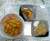 一昨日はシニア体操、昨日はエアロビ教室の仕事だったので離乳食日記を深夜に書き記す気力ゼロだった(^-^;さてさて、毎日記録しているノートを見ながら2日分を書くとするかぁ~。++++++++++++++++++++++++++++(午前8:40~)・人参ホットケーキ(約5g)☆コーンフレーク・すりリンゴ&ヨーグルト(20g)人参ホットケーキは、昨夜ユキちゃんママからお土産に頂いたもの。昨夜すでに2枚食べていたので、残り1枚を朝食べさせた。るーたんは手に握ってアムアム完食♪ヨーグルトは離乳食初期の頃は好んで食べていたが、中期から余り食べなくなっていた。なので、すりリンゴとフレークを混ぜて食べさせたら久しぶりに食べてくれた(^-^)☆ヤッター!食事中、今日も「コーンニチハー」と首を傾けてニッコリ。るーたんゴキゲンだコーンフレークは私も一緒に食べれるので楽しい♪フレークが入っている皿を渡してみたらるーたんは手にガブッとたくさん掴んでアム!イーネー♪リンゴは5g程残した。念のため、もう一度スプーンを口へ運んだらるーたんは口をブー!と、とがらせ拒否(^-^;はいはい。ごちそう様ですね。(午後12:30~)昼から仕事のため、楽させてもらってBFを使用。しかもバタバタだったので画像なし(^-^;BF2品・しらす粥・五目あんかけそれぞれ半分程食べた。でも私の外出を察知してかキョロキョロしてるーたん落ち着きがなかった。私の外出準備中に実家の母がお守りに来てくれたるーたんは準備中の私に向って「バイバーイ」と手をフリフリ振っている・・(^-^;なーんか寂しいなぁ。(午後16:15~)仕事から帰宅。母にママ留守中の るーたんの状況を聞いたら、『布絵本のひつじを指差してメッ!とかスヌーピーのぬいぐるみを見てワンワン!とか言っていたよ』(母)ほうほう。ご機嫌でお留守番してくれていたみたいだ♪さて、小腹が空いているみたいで私の顔を見て『マンマンマンマー!』(^-^;はいはい。おやつにしましょう。・ベビーせんべい1.5枚・麦茶これで満腹にならなかったみたいで、母と食べていたクッキーを欲しがって再度マンマコール・・。なので・・・・ビスケット1枚(午後18:40~)夕方おやつを食べたのに空腹らしくマンマコールしながら機嫌が悪い(+-+;バタバタと取り分け食を作った。・5倍粥(約30g)☆里芋&玉ねぎの煮付け(約60g)るーたんにエプロンをつけたらマジックテープの部分を手で引っ張ってエプロンを脱いだ・・。『るーたん!今からウマウマ食べるよ!エプロンしていてね』と再度エプロンをつけた。・・・なのに、また外す(+-+)しばらく放っていたら、るーたんはエプロンを頭から被り必死で自分で着けようとしている(^-^;何度も空振りしても頭から被って着けようとする・・。数分後『ワァーーン・・・。』やれやれ・・。煮つけをスプーン10さじ程度食べたら口を開けない・・。昨夜たくさん食べたのでお腹空いてないのかもねー。まぁいいや。
