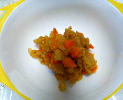 るーたんは9ヶ月目前でカミカミが上手になってきたので今後は”取り分け離乳食”を増やしていこうと思っている♪(午前)・トマトソース粥(約25g)・豆腐のカボチャスープ(約10g)・麦茶離乳食を作っている最中に、待ちきれずアーーーン!と空腹コールが出ていただけに(^-^;食べっぷり良好◇(午後)・7倍粥(約10g)・根菜煮 豚汁風(約70g)・かいわれ大根&カボチャのマヨネーズあえ(約35g)今夜の晩御飯に豚汁を作ることにしていた。だから、まず圧力鍋でじゃが芋、人参、玉葱を昆布だしで柔らかく煮込んだ後に取り分けをし、それに少量味噌を足して”根菜煮”を完成~!同じくカボチャサラダ用のカボチャを煮込んだ後に取り分け→カイワレ大根の葉を少量入れ、だし汁&マヨネーズで再度加熱して和えて完成~♪るーたんの大食いモードが以前のように戻ってきつつある☆三品とも、ほとんど食べてくれた(^0^)♪うっれしー♪