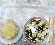 (午前8時35分~)・コーンフレーク&野菜のミルク煮(約60g)☆ワカメ&麩のお吸い物(約50g)サツマイモ、ホウレン草を茹でた後、お湯と牛乳小さじ1杯を鍋に入れ、野菜&コーンフレークを入れて煮たもの。お吸い物に、るーたん初!ワカメを使用さんきちさん所の れんクンの離乳食でワカメを使ってあるのを参考に作りました♪るーたんはワカメも麩もパクパク食べ、汁もゴクゴク・・・完食!ミルク煮も間髪いれずパクパク・・食事の途中にヌイグルミ達を見たら「コンニチハ」と首を何度もかしげ、一度だけ「バイバイ」をした(^-^)るーたんは、ヌイグルミも物ではなく、人間みたいな感覚で理解しているようだ。・・満腹になってきたら、ラックの後部にある頭部保護クッションを取って遊びだした(^-^;クッションはマジックテープで装着されているものだが、この部分を毎日るーたんが何回も抜き取るのでクッションが痛んできている。。ミルク煮は40g程食べた。(午後12時15分~)・5倍粥(約30g)・卵入り肉豆腐(約100g)肉豆腐は昨夜の取り分けを少し残していてそれに固ゆでした卵黄を加えて煮た物です。取り分けにアレンジすれば楽だわ~(^-^)♪肉豆腐は60g、お粥は半分程食べた。午後から仕事があるのでバタバタと外出~今日も るーたんから右手をフリフリされ「バイバイ」をされた。るーたんはママが外出する時にはバイバイするのが早いんだよな・・。ううっ寂しい。。(午後16時半~)仕事から帰宅後、実家の母、るーたんとティータイム♪るーたんには普段通り ベビーせんべい1枚☆☆☆☆☆☆☆☆☆☆☆☆☆☆☆☆☆☆☆☆☆☆☆☆☆☆☆☆今日も夕方の離乳食の前にお風呂に入浴るーたんは、お風呂の友のアヒルちゃん達と遊ぶのが好きだ今まではアヒルを握って口にアムアムしたりバシャバシャしたりするだけだったが、手の握力がついてきたので手でギューッっと押して「ピー!」と鳴らせることができるようになったので何度も押して「ピー!ピー!」となるのを楽しんでいるしばらく飽きて遊ばなくなってきていたチューちゃんも「チュー!」と鳴らせるようになったので、また遊びの友に返り咲き~(^0^)☆☆☆☆☆☆☆☆☆☆☆☆☆☆☆☆☆☆☆☆☆☆☆☆☆☆☆☆(午後18時50分~)・青海苔入り うどん 味噌仕立て(約150g)・茄子とトマト、玉ねぎのグラタン(約65g)うどんは3~4cmくらいの粗切りなのにるーたんは難なくパクパク!しかも食べるのが早い!かなり咀嚼能力が発達してきたんだなぁ☆大好きなうどんは、もちろん完食!グラタンも美味しかったみたいでモグモグとどんどん食べていって完食~◇