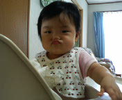 昨夜は元の睡眠リズムに戻ってくれたのでるーたんの夜泣きはなく、朝まで眠ってくれた☆お陰で私も久しぶりに熟睡できて気分スッキリ♪朝起きた時に服が汗ばんでいたので新しい服を持って来たら、るーたんが両手で持って『ンーー!ワゥワゥ!』と言った。「ん?どこを見てワンワンと言ったんだ?」と思ってTシャツを見たら・・・パンダ、うさぎ、クマ、そして犬がプリントされていた!『ワァ!るーたん!すごいね~ワンワン見つけたね♪』と褒めてあげたそういえば以前、このTシャツを指差して『るーたん!ワンワンがいるよ!』と言ったことがあったっけ。それを覚えていて言ったのならば、すごいじゃないか~☆やるなー!るーたん!・・・と感動してしまった。はい。親バカです(^-^+☆☆☆☆☆☆☆☆☆☆☆☆☆☆☆☆☆☆☆☆☆☆☆☆☆☆☆☆服を着替え終えて、パパの眠っているのを見て『オッ!パァーパ!』と、パパを指差してニッコリ!その声でパパが目を覚まして起きたら『ア~アッアッ!』と身体を上下に揺らして喜ぶ(^-^)パパが『るーたん おはよー』と言ったらるーたんは既に抱っこポーズ!朝から大甘えん坊だ(^-^;☆☆☆☆☆☆☆☆☆☆☆☆☆☆☆☆☆☆☆☆☆☆☆☆☆☆☆☆今日は午後からシニア体操教室の仕事なので実家の母から るーたんサポートに来てもらった♪母に昨日の「パンツ被り事件」の事を話したら母も大うけ!・・・『あら!るーたんが ママのほうを見て口をとがらせてるよ!』と母。・・・るーたんを見たら、確かに私のほうを見て『ウーー』と低い声を出して口をブー!ととがらせている(^-^;『るーたん 自分が文句言われているのを分かってそんな表情してるからスゴイねー!よく人の話を聞いてるよね』と笑いながら母が言った。そうなのだ。るーたんは以前から不快な時、満腹で食べたくない時に口をとがらせてブー!という表情をしていたが、それが更に『ウーー』と不快な声まで出すようになった(^-^+ご参考までに、こんな表情 ↓ なのです。普段のノーマルな表情はこんな感じ ↓自我がどんどん目覚め始め、赤ちゃんから子供へと成長していっているんだねぇ~それはそうと、るーたん!いつまでブー!とふて腐れてるんだ!?やれやれ。マイブーム続いていますなぁ(^-^;☆☆☆☆☆☆☆☆☆☆☆☆☆☆☆☆☆☆☆☆☆☆☆☆☆☆☆☆仕事から帰宅。3人でティータイム♪その時に母が『るーたんの横髪を切ってあげたら?』とのこと。『なんで?』『今、首の”あせも”がひどいから横髪が刺さって痛いんじゃない?』と母。・・・という訳で、るーたん 初!断髪。横髪だけ切ったのに、顔の印象が変わった!マッシルームカットみたいになって、少し男の子っぽくなったんじゃ?まぁいいけどね・・。☆☆☆☆☆☆☆☆☆☆☆☆☆☆☆☆☆☆☆☆☆☆☆☆☆☆☆☆お気に入り日記でお世話になっているさんきちさん所の れんクンも今日3回目の髪切りだったんだぁー(^0^)☆一緒でうっれしーー♪