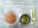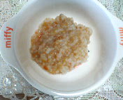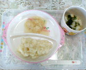 (午前)・じゃこ粥トマトソース仕立て(約30g)・りんご煮(約20g)じゃこ粥はパクパク完食!やったー(^0^)りんご煮は食べ遊び。まぁいっかー。(午後)・ミックス粥ケチャップ仕立て(白菜、鶏胸ひき肉入り)(約30g)・白菜、鶏胸肉のスープ(醤油仕立て)(約7cc)最近、お粥は食べ遊びをしてほとんど食べないので少なめに作っていたが今日のミックス粥は全部食べてくれた!しかもスープも70ccと たくさん作っていたが50ccくらいパクパク、ゴクゴク飲んでくれた♪お肉もしっかりモグモグして飲み込めるようになったので、咀嚼能力が発達してきた証だな☆いよいよ一週間後には、るーたんは9ヶ月になる!今まで長かったようで早かった、この8ヶ月間。もう1歳まで目前!今年の年末が今から楽しみである(^-^)♪