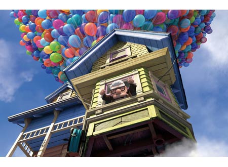 カールじいさんの空飛ぶ家 (2009米) 『モンスターズ・インク』のピート・ドクター(監督)と、『ファインディング・ニモ』の脚本を手がけたボブ・ピーターソン(共同監督)がタッグを組んだ感動作。 この家で君と出会い 君と約束した この家で君と愛を誓い 君と夢を見た そして この家で君と年を取り ある日 一人ぼっちになった ” もう 君に会えないのか・・ ” この家で君と出会い この家で君を失った だからもう一度 この家といっしょに 君に会いに行く 予告動画のナレーションだけで (Ω□Ω泣)うるうるしてしまう、今ヒット中の映画 「カールじいさんの空飛ぶ家」 を見に行きました。 出会った頃のエリーも、ボーイスカウトの少年ラッセルも、犬語翻訳機をつけた犬ダグも、ひとつひとつのキャラクターがとても個性的で、イキイキしていて、本当に面白かった。