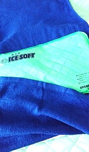 ソフトな保冷枕をタオルにくるんで枕の上に置いて後頭部を冷やす