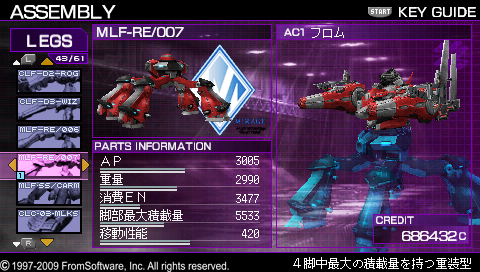 ドラッグオンドラグーン届く→何コレ楽しい→更新が・・・(´Д`)-----------------------------------------------------PS2版からも大幅にパワーアップ!!AC3Portable からだけでなく、PS2 版「アーマード・コア3 サイレントライン」からも数々の要素が追加されており、昔のユーザーも満足するボリュームとなっています。アドホック通信で手軽に対戦!AC3Portable に続き、今作もアドホック通信対戦を搭載。いつでもどこでも誰とでも手軽に対戦することが可能になりました。腕を磨き、自慢の機体でライバル達に勝利せよ!最大4人まで同時に対戦が可能で、1対1、チーム戦、バトルロイヤルなど様々な戦い方やルールで楽しむことができます。さらにボリュームアップの復刻パーツ! *詳細情報は次回紹介!過去シリーズタイトルの人気パーツを復刻パーツとして追加収録。AC3portable で復刻されたパーツもそのまま収録されているので、20 以上の追加パーツが登場します。新しい機体と新しいパーツ! *詳細は続報を待て!PS2 版では登場しなかった新しいACが登場。そしてその機体が装備する新しいパーツを新規パーツとして収録しています。-------------------------------------------------なんか次回で終わりそう部活しんどい 2試合やるとかハード過ぎんでさっき太腿の裏の腱(?)を攣ってしまった しかも2回も今まで生きてきた中で一番痛かった・・・