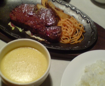 現在、自分は高知市内で夕食中です♪ 場所は…高知では有名な「ステーキハウスやぽんすき」で♪ カレーライス(400円)とヒレステーキランチ(1300円)をいただきます♪(おいしそう) ・・じつは、仕事が入って休暇が…(涙) というわけで・・いまから室戸に帰ります!