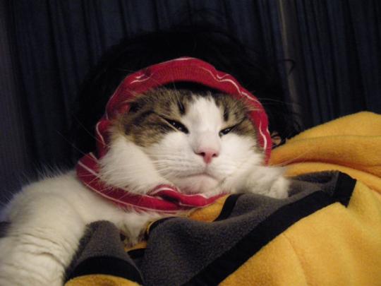 さて、年初めから”今年はブログの更新頑張るぞー!”と、決心していたにもかかわらず。。。。気付けば、もう10日はっはっはっ!!時が経つのってホントに早いいえ、でも、決してムサシくんのように ”ボーーー!” っと過ごしていたわけでは有りませぬこれでも、いろいろと忙しく、事件も起こり。。。もちろん、その間にも猫ズ達にも事件は起こり。。。。。まずはレオくん。まるで、”惑星なんとかの宇宙人” のようですが、いえいえ、また、わたしのイタズラだと思ってるでしょ違います。断じて、イタズラではありません実は、レオくん、兄弟バトルの時についた引っ掻き傷を、掻き壊してしまうんです始めは小さな傷だったのに、掻き壊してだんだんひどくなっちゃって。。。。で、コレです。掻き怖し防止策!ほっかぶり、状態。でも、けっこう大人しくしているから、さすがウチのぼけぼけ猫ズです。テーブルの上で、居眠りしてたらお父さんに、こんなイタズラされちゃいました。レオの鼻チョウチンです。今年も、珍事件、さまざまな出来ごとを、皆様にお送りしていけそうな。。。。予感。。。。お楽しみに。。。。☆ムサシーズについてのお問い合わせはメールにてお願い致します。人気投票参加中です!応援ポチとっても嬉しいですMusashi’s book(2008)●MUSASHI’S“だいすき!!”CD+DVD(2008/7/30)