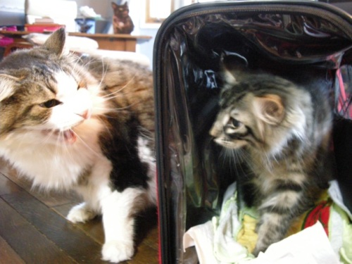 先日、カイが3歳の誕生日を迎えましたが、カイは来た時からあまり印象が変わらないというか。。。ま、もちろん身体は大きくなりましたけど、顔つきも性格も最初の印象のままです。わんぱくで、ヤンチャで人懐っこく、でも内弁慶!!このカイ君、何故かレオポンと良く小競り合いになるしかも、必ずレオが負ける。。。で、今日その理由のルーツを発見カイが家に来た初日。レオが、”ヒャー”をしたんですね。。。。三つ子の魂百まで、でしょうか。大きく育ったカイは何かとレオに、ちょっかいを出しますニャン!別宅ブログ「声のいろいろ言葉の不思議」声のこと、音楽のこと、言葉のこと、本業のお仕事のブログですそちらにも遊びにいらしてください(でも、やっぱり、猫ズが時々登場します!!)
