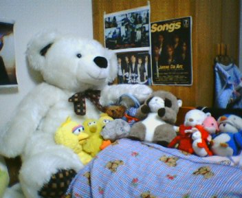 明日12日に受験した大学の合否通知が届きます(;・∀・)アハハそんでもって明日は日直やしー(関係なし単語テストやしー(勉強しろよ明日はドタバタしてそうです( 。A。)アハハ八八ノヽノヽノヽノ \ / \/ \↑さっそく壊れてみるそういえば今日の英語の授業久しぶりにいっぱい答えたからスタンプもらえたvvワ─。.゚+:ヾ(*・ω・)シ.:゚+。──ィ 英語はね、ウンyasu様並に頑張らないけんのよw(なまってるよーとりあえず合否が分り次第メール更新する予定ですw(*´∀`)最後にウチのベットの最新状態をご紹介★(紹介しなくていいって↓↓今部屋にあるぬいぐるみ系を全部枕元に持ってきましたvvワ─。.゚+:ヾ(*・ω・)シ.:゚+。──ィ 全部で13体(笑)ちなみに真ん中のほうにいる茶色い狸もどきがこの前亡くなったおばあちゃんのやつv(*´・д・)(・д・`*)ネー。後ろに貼ってあるのはもちろんJanneDaArc様ですよ?v( ´艸`)ムフフ←キモス