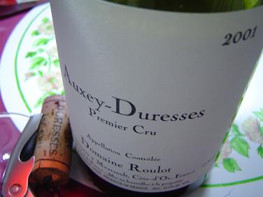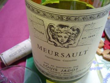 食中酒であるワイン。飲み方さまざまでも食のアシスト的存在のみでその味わいが語られることは普通の食卓ではないのかもしれません。「このワインおいしいね」「うん。飲みやすい」これでおしまい。だからワイン好きはやはり大いに語ってあげなければ。確かにいまどきぶるならヴィラージュクラスで発泡酒2ケース分。やはりワインは高価だと言えましょう。そんなに値段をかけない物だと沢山飲んでいる好き物も語れるかどうか・・(笑)。(先日の会社での飲み会でふと思いました・・。)ムルソー’95 ルイ・ジャドもう12年も経っているので相当の雰囲気もでているのかなと。でもこのあたり、結構厳しかったり、ひねてたり、ブショっていたり、よどんでいたりあたりはずれ多いですね。さて・・・コルクを抜くと同時にいい香りが。もう中身の完成度がわかります。当たりです。最初は固いですがかなり速いペースで厚みと甘みが出てきました。果梨、アプリコット、ややバナナ、複雑性はないものの大好きなムルソー君です。この愛らしさは何だろうか。ワインの面白さをまた教えてくれます。酒石キラキラ。おなじみの光景ですがなぜかいつも感動します。いい熟成できたんだね~って。しかし赤も白も95VTのエレガントさは図抜けてます。
