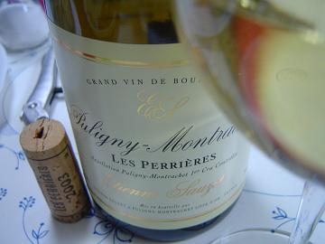 なんとなく飲みたくなって手にした1本。タイムリーにブログを賑わせているソゼ。それも03を性懲りもなくいってみた。03のイメージがなかったらなぁ。おそるおそる一口。妙な苦味もなくいい感じだと思う。かなり膨大な厚みにびっくり。これは何か開ききった?感じの悶ですよ。もうピークを迎えている。しかし複雑性には欠ける厚ぼったい感じであることは否めない。焦げた樹木の香りと焦がし砂糖の余韻も徐々にでてきた。若いVTでこんな開き方をするのはやっぱり異常ですかね。あのラモネも暴れる果実をおさえきれなかったのだから・・しょうがないか。ピュリニー・モンラッシェ1erCruレ・ペリエール’03 エティエンヌ・ソゼパイナップル。ピュリニーお得意のミネラル感はゼロ。ムルソーチックな感じないが、やはりバランスの悪いこの甘さが難しさを助長する。が・・余韻の酸は思ったよりイガッた感じはなくすいすいいける。美味しくないのではない。何か嫌いではないシャルドネが存在するのだ。精一杯蔵が造っているのであたりまえか。しかしやっぱり昔から人気のある蔵です。これからもいろんなソゼ飲んでみたいですねー。