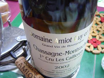 ブルゴーニュ好きならやはりカイユレという名に敏感に反応するのではないでしょうか。1つはGCに地続きである荘厳な格式を持ち、もう1面は珍品の宝庫?という私的イメージがあります。しかしそれは周知の通りピュリニー1級であってシャサーニュではないのですが。でもギィ・アミオと聞いて連想するのは何と言ってもピュリニーのカイユレドモワゼルなのです。(モンラッシェと言いたいところですがここはドモワゼルが看板ワインと言えましょう)昔飲んだその素晴らしさをいまだ強烈に憶えていて、そのイメージでいつもアミオを見てしまうのでしばしば物足りなさを感じてしまうのです。シャサーニュ・モンラッシェ1erCru レ・カイユレ’02 ドメーヌ・アミオ・ギィ&Fさてシャサーニュのど真ん中上部に位置する1級畑、さぞかし酸ののりも爽やかな感じなのかと思いきや、VTの影響もありかなり果実の厚みの感じられる結構いい出来になってます。少し蜂蜜やアプリコットのような香りもありシャサーニュも最近このような造りになってきたのかムルソーなどとの判別もつきにくい感じがします。看板的クリマやワインがある蔵は、それぞれ特にポリシーを持って誇り高い作品を造っているはずなのできっと美味しいはずなんですけどね。