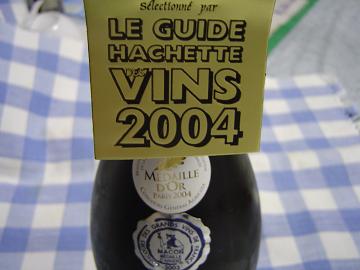 今や珍しい?神々しいばかりのPOPが目を引きます。ワインをよく知らない方ならずとも思わず買ってしまいそうです(笑)。しか~し!!この1本はとて~も地味~な造り手で、プレモーにある知る人ぞ知る?名家であらせられます。プレモーで出来るピノを使い、とても香り高いCNVを産出しています。「プレモープリセーを単独アペラシオンに!」の代表?を務める私め(笑)からしますと、フィサン村名でさえ時にはCNVに混醸されるわけですから、それ相当の品質を求められるのも当然ですのでここはそのグレードを軽く凌駕するものと飲んでみて確信し、単独ACを早く取得していただきたいと勝手に思うのです。コート・ド・ニュイ・ヴィラージュ’01 ドメーヌ・ジャン・フィリップ・トルシュテ木と土と果実の香り。おおらかですが決して大味ではない繊細な風味もあります。NSG側のプレモーにある畑らしく平地に咲くお花畑、フローラルをわずかに感じさせテロワールをもった素晴らしい逸品です。私的に満足なスタイルを持っています。普段はあまり気にしていませんが、選ばれるだけの良さは当然あるのです。皆がおいしいと思うワイン、私的にも応援します。ちなみにこのワインのノミネートは以下。selecttonne par LE GUIDE HACHETTE des VINS 2004(アシェット誌ご推薦)MEDAILLE D'OR PARIS 2004 Concours GeneralAgricole(金メダル?)MACON MEDAILLE D'ARGENT 2003 Concours des GrandsVins de France(銀メダル?)