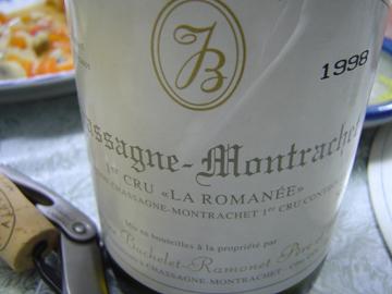 お家ではオマールなんぞが食べたくても無理なので、超巨大の海老ちゃんを利用してヒュメドポワソンをバターや生クリームを使ったソースで仕上げてみました。バケットを買ってきてまた家で焼いてそのソースをつけて食べる。う~ん美味。お外で食べると軽く5Kは取られますぞ。そして今宵のお供はシャサーニュの丘のちょいと標高の高いとこの1級、ラ・グラン・モンターニュ総称区画”ラ・ロマネ”でありまする。シャサーニュ・モンラッシェ1erCru《ラ・ロマネ》’98 ドメーヌ・バシュレ・ラモネほぼ10年熟成の黄金色。前に飲んだバタールを思い出します。アプリコット、干し柿、綺麗な酸がおおらかなミネラルとあいまって甘さを感じさせます。しばしこれがシャサーニュであることを忘れさせてしまいます。6,7年前に買った時はがちがちでしたが、うまくいくとこうなるのですね。電気代を使った甲斐があります(笑)。畑の名前の所以を知りたいところですが某ニュイのラ・ロマネのように若いうちは難しいが・・と謳われるように打ち解ければ素晴らしいものになるのは実証されました(笑)。20年経っても表情をみせないシャサーニュもある中、案外分かりやすいのも嬉しい一献でありました。おいちー。