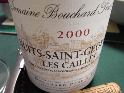 さーて、新年1発目の赤はやはりこのテロワール!ニュイ・サン・ジョルジュ1erCruレ・カイユ’00 ブシャール・ペール・エ・フィスブシャールの自社畑。年産5700本。レ・サンジョルジュとヴォークランに接しているキャラクターから何か好き物には容易に想像のつく感じ(笑)。若いNSGは少々きついものがありますが、案の定、まだまだ鋼のように固いです。抜栓後、時間を2時間ほど置いていましたが、中々開きません。暖かい部屋で鍋をしながら放置していたところ急にほぐれてきました。ほわ~んとアニマル。少し経ってカシス、マラスキーノ、ラズベリー。腐葉土に鉄、少々ブラッディ。焦げた肉の風味も。NSGは野暮ったいのではないのです。大地の香り満点ですが、酸が効いていて、スパイシーでミネラリーでシャープ。飲み進めると、ますますジビエを感じます。典型的に「ぽい」なぁ~。畑の名前、カイユは「ウズラ」。因みにペルドリは「山うずら」。どうりでジビエですな~(笑)。これぞ私的王道に思えてきました(爆)。