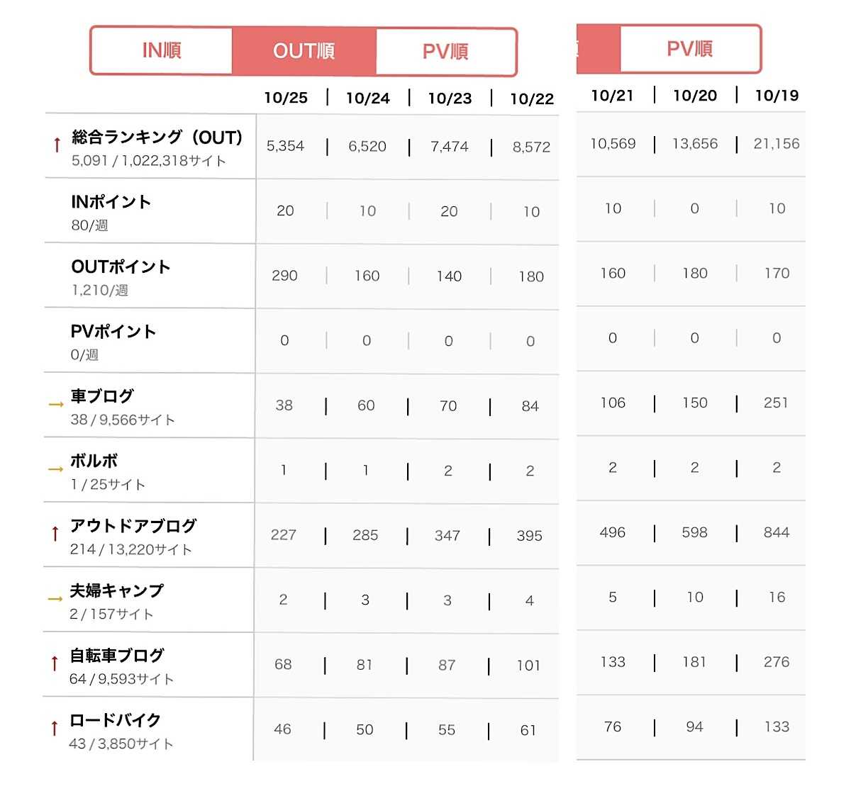 ・OUTポイントは 「にほんブログ村」から自分のブログに入ってきた数のポイント。