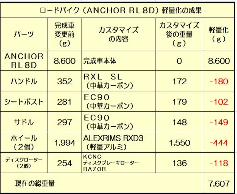 ロードバイク軽量化後の重量・理論値と実測… 2024.02.02