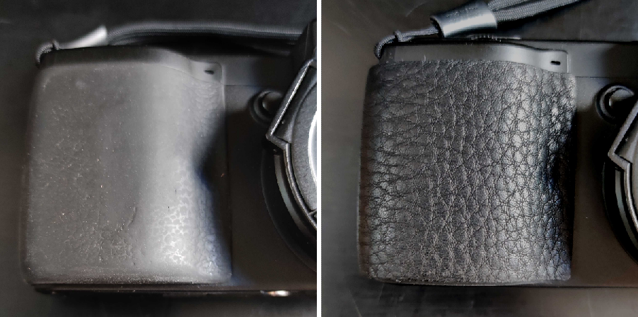 ネットを探すと、GRのグリップ貼り替えの情報はたくさん見つかるんだけど、GXの事例は見つからない。GRとGXのグリップは似ているようで結構違うので、GR用の補修品やサードパーティー品も流用できそうもない。