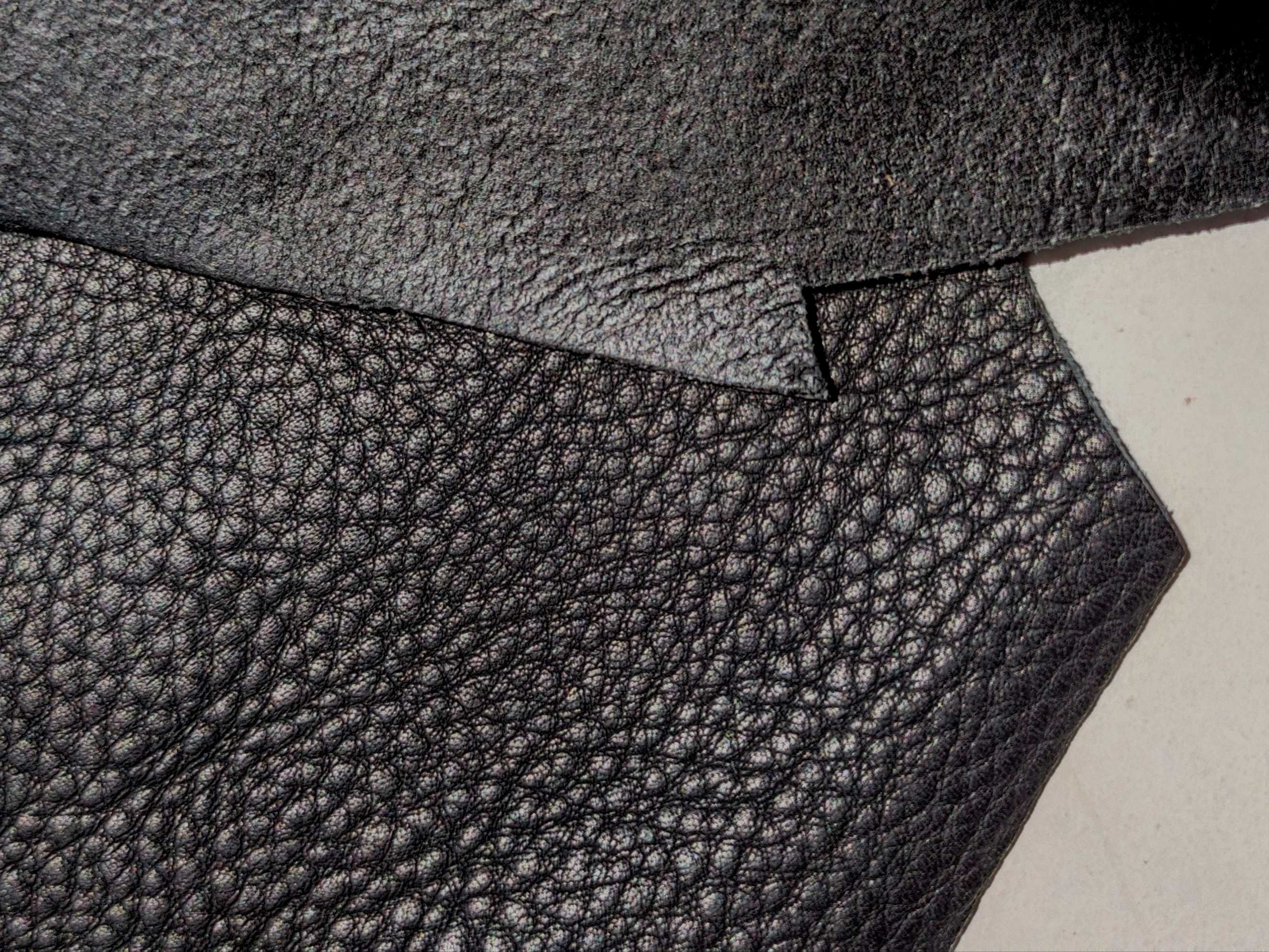 何の革かはわからないけれど、やわらかくてシボ柄のカッコいいこの革をチョイス。他の色もあったんだけど、今回は無難に黒にした。
