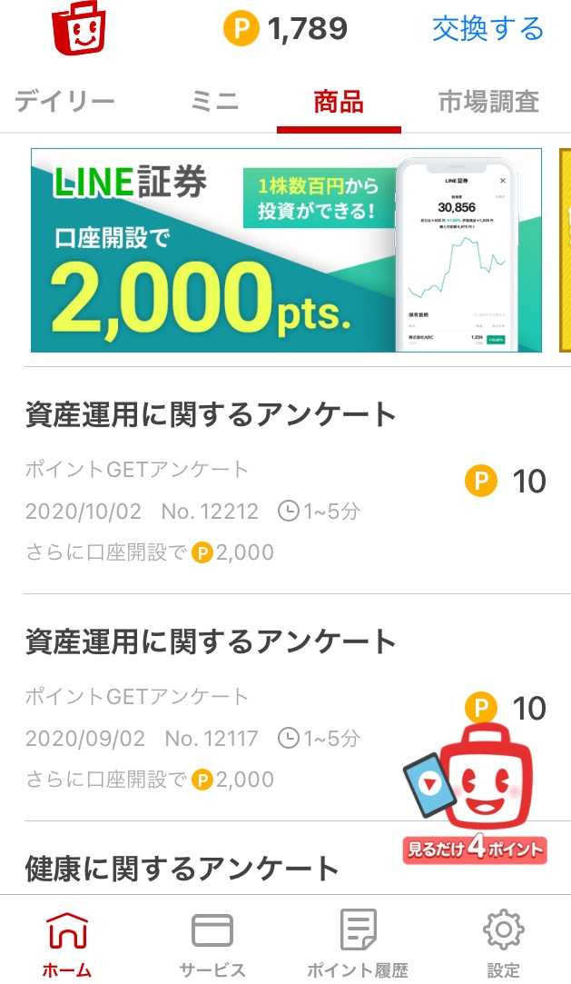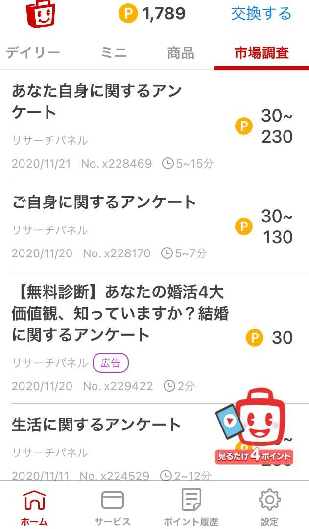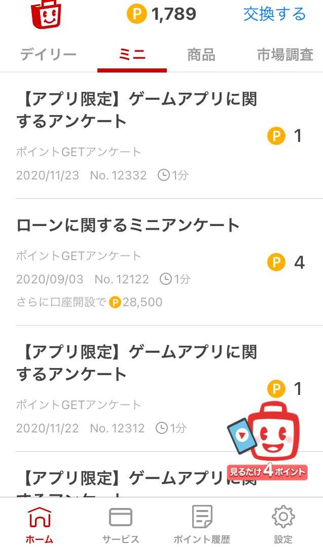 1アンケート/4~6ポイント程度稼ぐことができます。