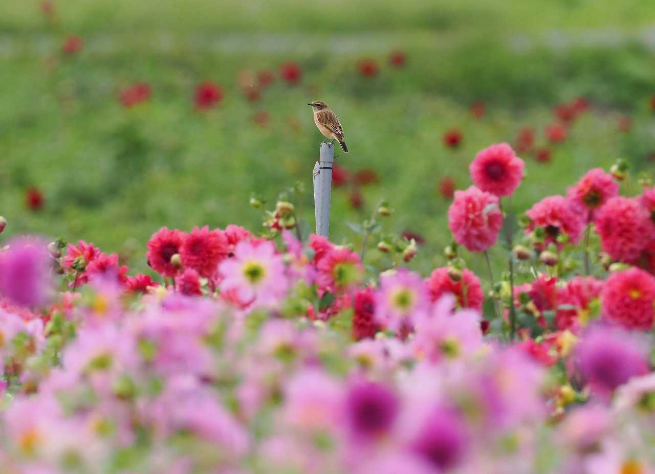 秋桜の後ダリアノビタキに行って来ました基本、支柱ばかりに留まります 2枚ダリア…