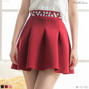 スカート ボンディングビジュー付 フレア ミニ 夏 ウエストビジュー ゴム 可愛い ブラック ボルドー ピンク 黒 M L LL レディース 夢展望◆入荷済