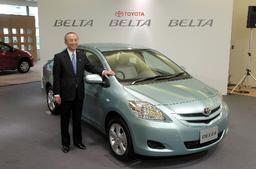 トヨタ、最小セダンのベルタ発表 女性に照準トヨタの新型車「ベルタ」を紹介する渡辺社長28日、東京都豊島区でトヨタ自動車は28日、トヨタブランドで最小のセダン、ベルタ(排気量1.0リットルと1.3リットル)を発表した。室内と荷室が一体になったコンパクトカーの小回りの良さと、セダンのスタイルの良さを併せ持つ。メーカー希望小売価格は税込みで132万3000円~175万3500円。ベルタはイタリア語で「美しい」「美しい人」。プラッツの後継車だが、「女性に比重を置いて新しい市場を開拓する」(渡辺捷昭社長)狙いで、CMキャラクターも女優の鈴木京香さんを起用した。 プラッツより全長を12センチ広げ、荷室の容量をゴルフバッグが4つ入る程度に拡大した。