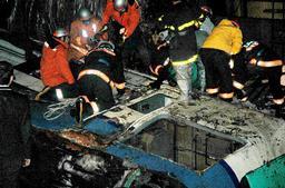 脱線し横転した特急「いなほ」の車両。救出作業が続いた=25日午後11時50分、山形県庄内町で線路から約5メートル下に転落して横倒しになった特急電車=25日午後8時5分、山形県庄内町の羽越線でみぞれ交じりの強風と雷鳴の中、鉄橋をこえた直後の特急電車が脱線、転覆し、2人が死亡、30人以上がけがをした。山形県庄内町のJR羽越線を走っていた「いなほ14号」。26日未明も、車両内に閉じこめられている乗客の救出が懸命に続いているが、厳寒と足場の悪さが作業を阻む。運転士は、警察の調べに「突風が来て、車体が浮いた感じがした」と説明している。これが原因だったのか。列車は6両編成。先頭の6号車は鉄骨造りの小屋に突っ込んで横転、小屋の角にぶつかって、中央部分でくの字に折れ曲がっていた。死亡した乗客はこの車両に乗っていた。乗客らは毛布にくるまれて救出された。現場には車両からはずれたとみられる車輪が落ちていた。午後8時すぎ、別の車両から、「キャー、キャー」という女性客の悲鳴が聞こえた。列車には妊娠7カ月の妊婦も乗っていた。救急隊員に腹痛を訴えたという。後ろから2両目に乗っていて自力で脱出した男性は「スピードはそんなに出ていなかったが、雷と風はものすごかった。ガタガタと音がしたが、脱線という感覚はなかった」と振り返った。午後10時を回り、雨が雪に変わった。猛烈な吹雪の中で、工作機械などを使って救助作業が続いた。激しく損傷した6号車に乗客らが残された。足や手だけしか見えない人もいる。救助隊員は狭いすき間に体を潜り込ませ、救出を試みる。救助隊員の呼びかけに答える人もいたが、その場で医師に死亡を確認された人もいた。事故当時、あられが降り、雷鳴がしていた。現場近くの農業の男性(74)は自宅にいた。雷が落ちたような大きな音がし、「ガタガタガタ」と地震のように家の戸が震えた。テレビのニュースで転覆だと知った。現場近くに住む女性は午後7時すぎ、自宅にいたところ、雷が鳴り響き、窓ガラスが割れるかと思うほどの激しい突風が吹き付ける音が聞こえた。「列車が飛ばされたとしたら、あの時の突風では」と思った。