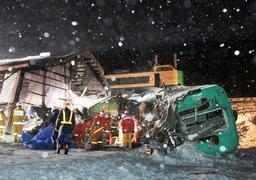 25日午後7時20分ごろ、山形県庄内町のJR羽越線砂越―北余目駅間で、秋田発新潟行き特急電車「いなほ14号」(6両編成)が脱線した。庄内署によると、6両中3両が転覆しており、乗客数十人のうち、少なくとも16人がけがをしているほか、車内に数人が取り残されている。同署に車掌が説明したところによると、電車は時速約100キロで走行中、突風が吹き、脱線したという。脱線したのは前方の5両。このうち1両は線路の土手から5メートルほど下に転落し、横倒しの状態。窓からけが人を警官や消防隊員が救出した。別の1両も転落し、鉄骨造りの小屋にぶつかり、横倒しになっていた。天井はつぶれた状態という。もう1両は斜めに線路をふさいでいる格好だ。現場は最上川を渡る鉄橋から南に約500メートルの地点。河川敷と田んぼが広がる一帯で民家はほとんどない。 山形地方気象台によると、現場を含む庄内地方には25日午後3時24分から、暴風雪・波浪警報が発令されていた。酒田測候所(山形県酒田市)によると、酒田市では午後7時12分に最大瞬間風速21.6メートルを観測した。天候は雨で、雷も鳴っていたという。 JR東日本新潟支社によると、25日午後7時過ぎ、「いなほ14号」の車掌から「異音を感知したため停車した」との連絡が入った。いなほ14号は午後4時34分に秋田を出発、午後8時7分に新潟に到着する予定だったが、雪の影響で現場手前の酒田駅を68分遅れで出発していた。