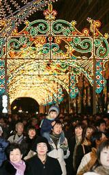 多くの人たちでにぎわう「東京ミレナリオ」=24日夜、東京・丸の内できらめく都心の冬の風物詩「東京ミレナリオ」がクリスマスイブの24日、東京・丸の内で始まった。主催者によると、24日は過去最高の39万7000人が訪れた。JR東京駅―有楽町駅の「丸の内仲通り」や東京国際フォーラムなどに、約50基の電飾アーチや光のオブジェなどが登場。午後5時、約14万個の電球に明かりがともった。99年から開催され延べ1439万人を集めたが、東京駅の改修工事に伴いこの冬で休止となる。主催者は過去最高となる約300万人の人出を予想する。31日までの毎日午後5時半~9時ごろと、新年1月1日午前0~3時ごろに点灯する。