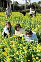 南房総で菜の花、正月には見ごろに 千葉・館山市菜の花を楽しむ家族連れ=24日、千葉県館山市の南房パラダイスで千葉県館山市の南房パラダイスで、菜の花が咲き始めた。このところの寒波にもめげずに平年並みに咲きだし、正月には見ごろになりそうだ。3月ごろまで楽しめる。広い園内には見上げるようなヤシが茂り、足元には菜の花が広がる。3連休の中日となった24日、朝から見物に訪れた家族連れが「南国みたい」と黄色い花々に見入った。