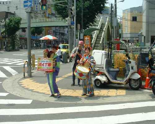 今日は仕事の関係で、京橋駅から大阪環状線に乗り西九条駅で下車しました。丁度ホームから改札を出たときに楽しい愉快なメロディーが流れてきて、なんとなくその方向に目を向けると懐かしい「チンドン屋さん」が目にとまり思わず写真を撮りました。私の方を見てニッコリと笑顔で答えてくれた、ちんどん屋さんの笑顔が印象的でした。それから大阪の西九条駅からユナイトステイトジャパンUSJを走る電車もドハデですね、今までマイカーばかりでしたから電車を見てびっくりでした。