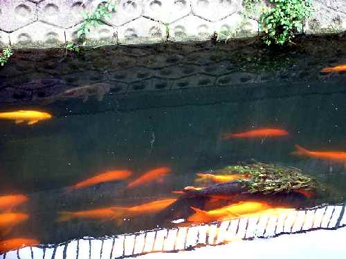 先日、大阪の梅田から阪急電車に乗り正雀駅「しょうじゃく」で下車し少し歩くと巾2メートルくらいの川がありました、水は濁っていてあまり綺麗とは言えませんがまあ流れていました。川の両側に鉄柵があり恐らく子供が川に転落しないようにとの配慮だと思っていました、水の流れを眺めながら歩いていてちょっとびっくりしました。なんと70センチ以上はあろうかと思われる大きな鯉が無数に泳いでいるのです。思わずカメラを取り出してその光景を撮りました。近くに数枚の掲示板があり、納得出来ました。鯉は市が数年前に放流しているそうです。目的は何だと思われますか?そうなんです。蚊とか害虫駆除のために入れているそうでそれなりの効果があるそうですよ。最初、買い物袋を持って自分の前を歩いていた数名の方が、全然見向きもせずに歩いているのに誰一人ととしてそんな凄い光景を無視しているのが不思議でした、でも理解できました。よそ者からすれば凄い不思議な光景でも毎日見ているとそれが普通でなんとも思わなくなるのですね。綺麗な花も、美味しい料理も毎日々見たり食べたりしていると感覚が麻痺すると言うか、感動がなくなるのですね。私達の日常生活でもそうです。電車のホームに数名の女子高校生座り込んで何か食べている。電車の利用者も避けて通っている。電車内でもそんな光景が見られる時代、日常茶飯事となると別になんとも感じなくなります。不思議と言えば不思議かも知れませんがふと思いついたことを書きました。皆さんやっぱり公共の場で他人の迷惑になることだけは止めるべきだと思いますね。変な方向に話が飛びましたが、皆さんはどう思われますか?
