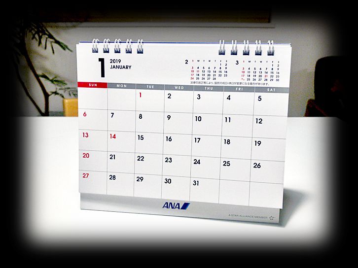今年も2019年の卓上カレンダーが届いたの。ANAの2019年カレンダーこれ、職場の卓上用にちょうどいいのよね来年も活躍してもらおうっと。今回のキーアイテム★「2019年カレンダー」