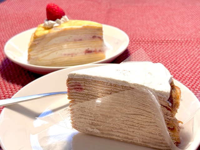 北海道展で見かけたケーキをティータイム用に買ってきたの。アトリエ シエリオンミルクレープ手前)カフェオレ、奥)いちご美味しかったね。また、見かけたら利用しましょ。今回のキーアイテム★「ミルクレープ」にほんブログ村