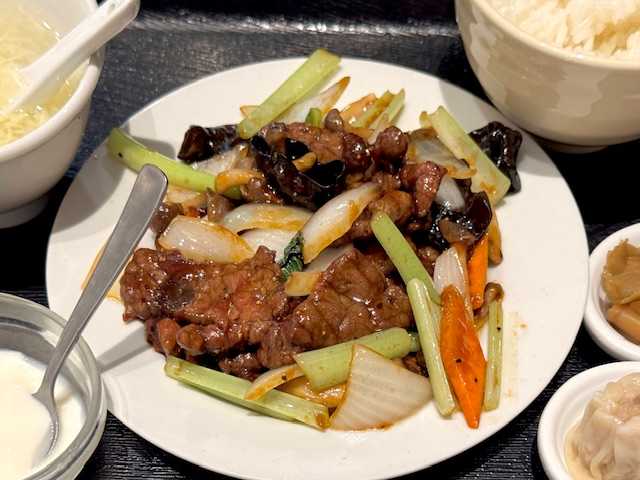 (上海焼きそばハーフ、スープ、点心、杏仁付き)