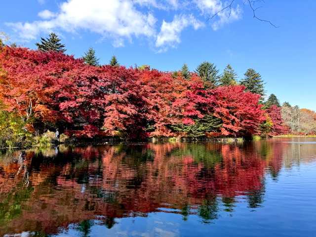 ランチの前に、雲場池で紅葉散策してきたの。雲場池水面に映る紅葉と青空紅葉が進んでるね真っ赤!平日の午前中ながら割と混んでたかな。さすが紅葉の名所。そろそろランチへ向かいましょ。今回のキーアイテム★「紅葉」にほんブログ村